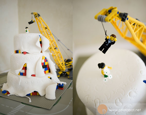 So if the ceremony wasn’t enough to rave about, then check out the details. TOYS! Having little “lego stations” around the reception so that everyone could make their own creations was a fantastic. But the crowning detail was the cake, a cake made of Lego complete with bride, groom and crane!