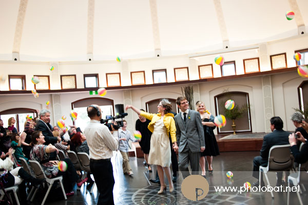 The ceremony was at the Baha’i Centre in Hobart, a fascinating building that I look forward to meeting again in the future. Instead of confetti there was Kami-Fufen, a Japanese toy that was propelled at the couple as they left the ceremony.